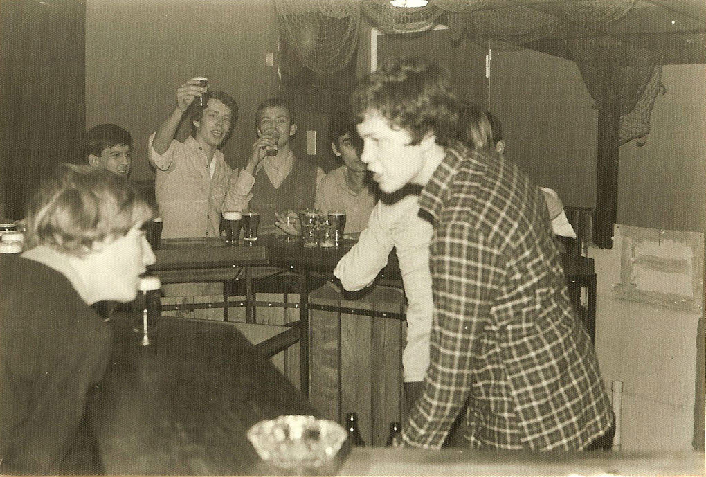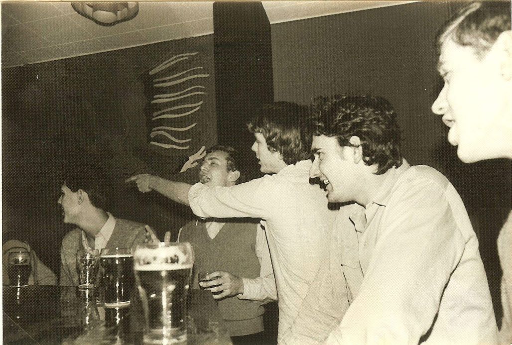 Op de achtergrond v.l.n.r. Bart Klaus, Ruud van Thiel, Willem Bekker, achter bar PietHeinSteger