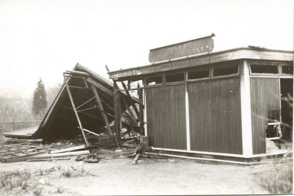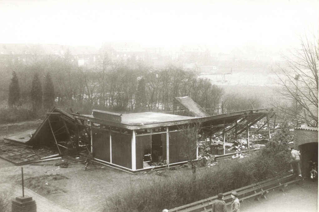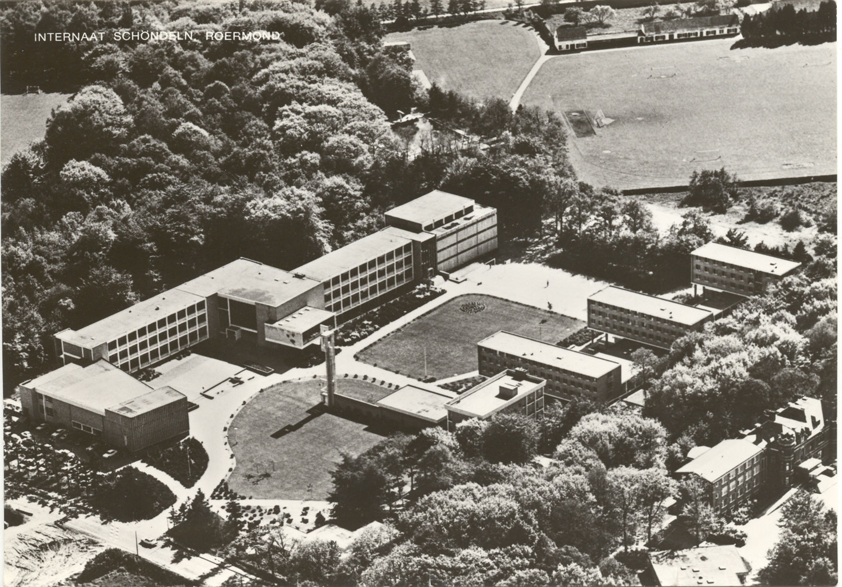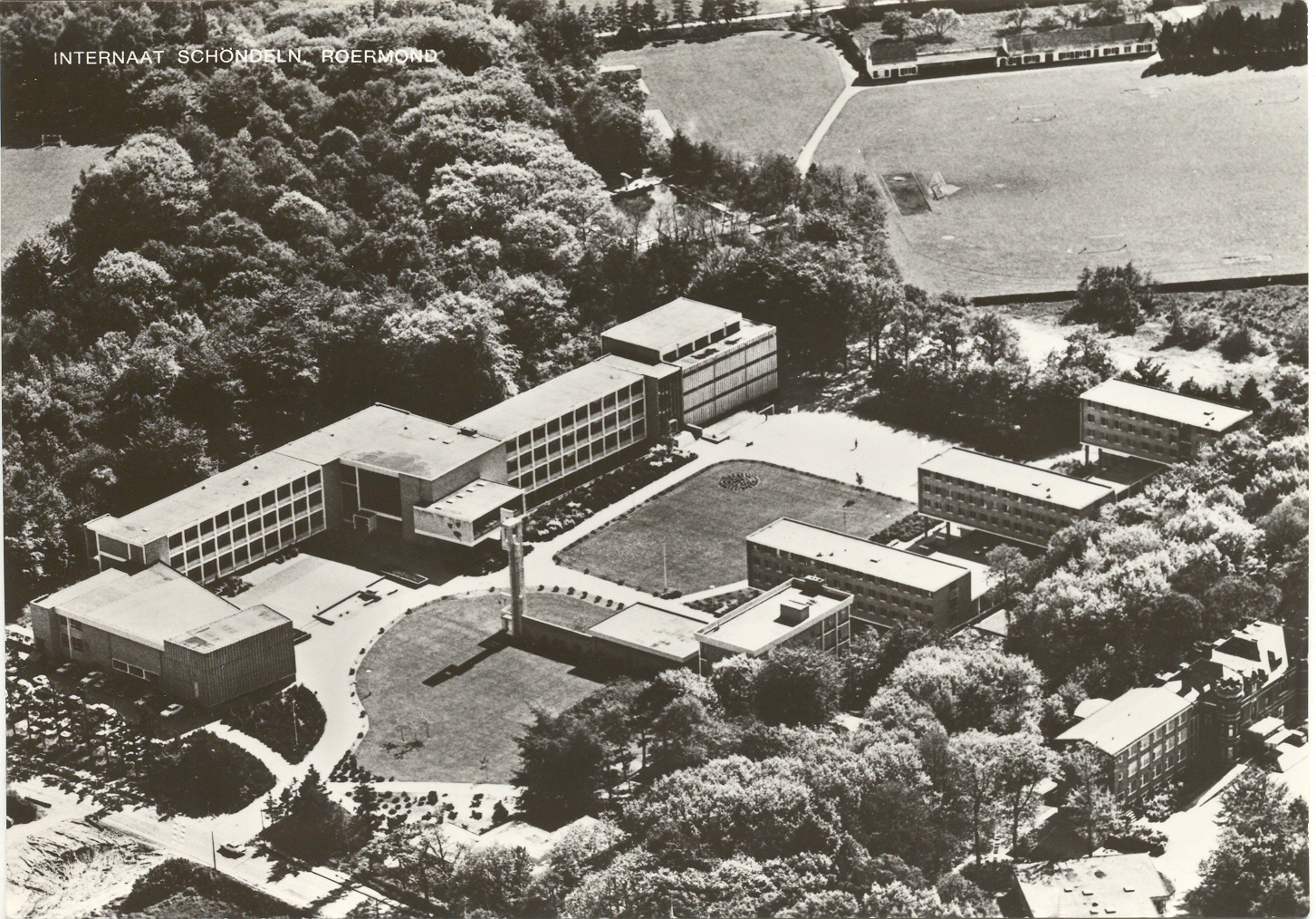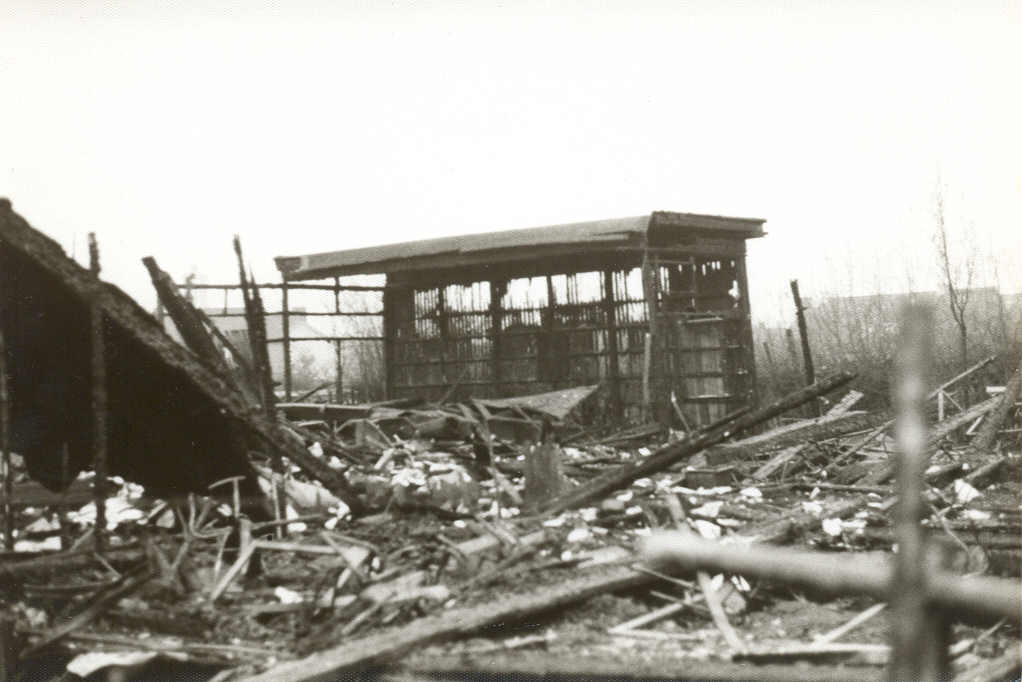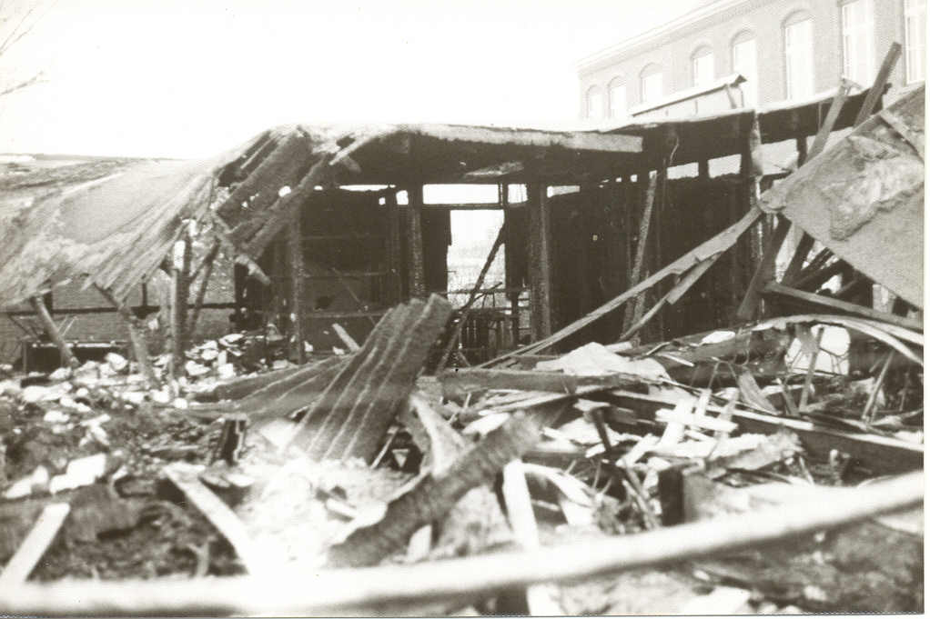 Brand Mavo kapel Lindanus locatie Schoolpad, geheel rechts het bromfietsen hok waar gerookt werd en ... gezoend..
