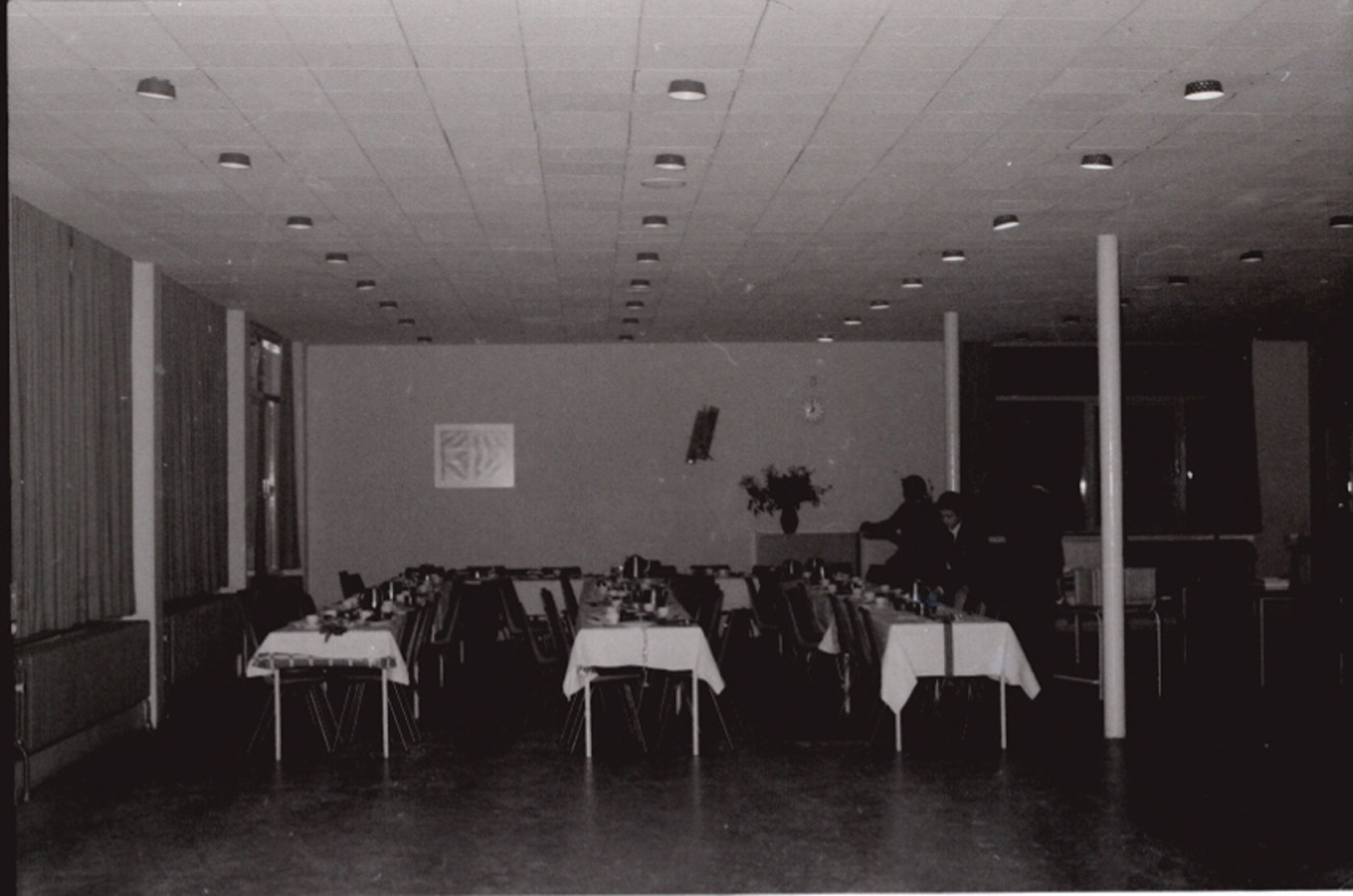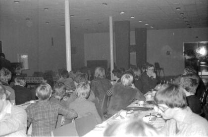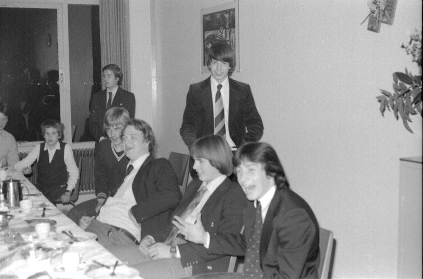 Kerstmaaltijd 1979, achterin Henk v Duinen bril geheel rechts Jerry Sengalrayan