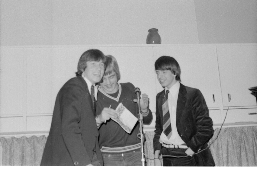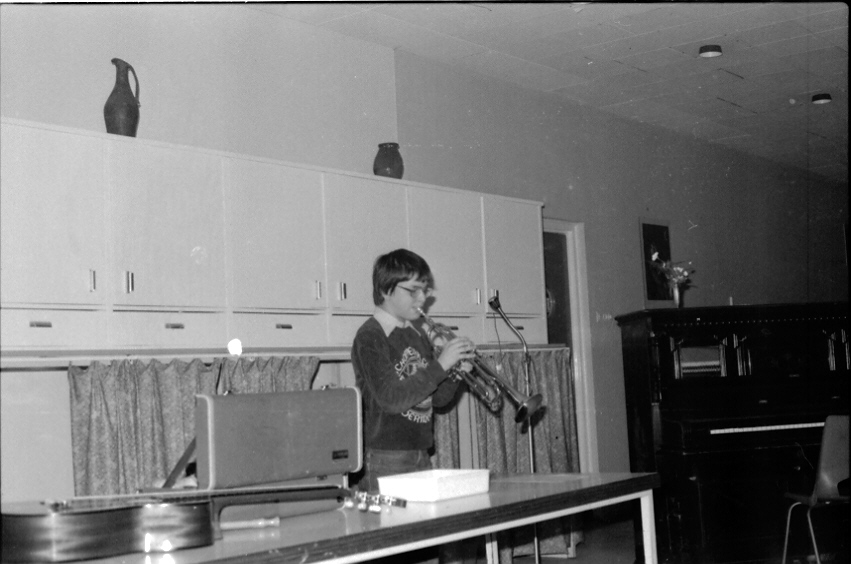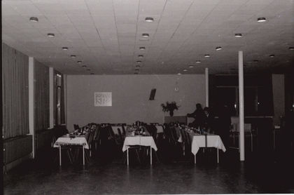 Zang tijdens de kerstmaaltijd 1979 meneer Mertens en Maas klappen vrolijk mee